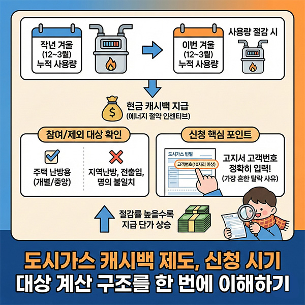 도시가스 캐시백 제도, 신청 시기 대상 계산 구조를 한 번에 이해하기
