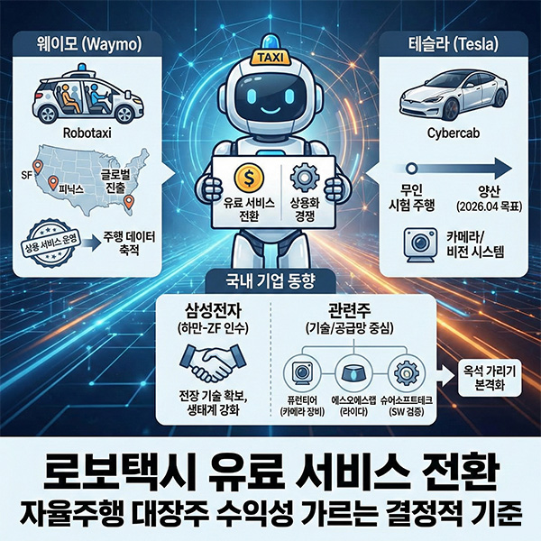 로보택시 유료 서비스 전환 자율주행 대장주 수익성 가르는 결정적 기준